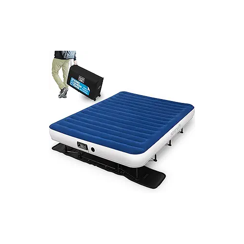 SereneLife EZ-Bed Inflatable Air Mattress with Frame | Portable Bed Cot with Built-in Pump and Rolling Case