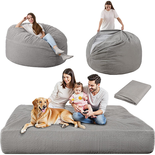 The outside of convertible bean bagchairs is constructed of fine-textured, breathable quality chenille fabric that is gentle to the touch and machine washable. The bean bag cover features a long zipper that spans its whole length, making it simple to put on and take off. You can quickly wash a bean cover if something is spilled on it to make it seem like new.The convertible bean bagchairs feature a secret zipper construction that does not at all detract from their lovely aesthetic. Additionally, a single, sizable side pocket is included to accommodate small objects like books, cell phones, and tablets whenever necessary.The convertible bean bagchair is easier to transport thanks to the broad handle, so you can relax and take advantage of your alone time wherever in the home.