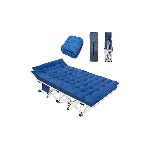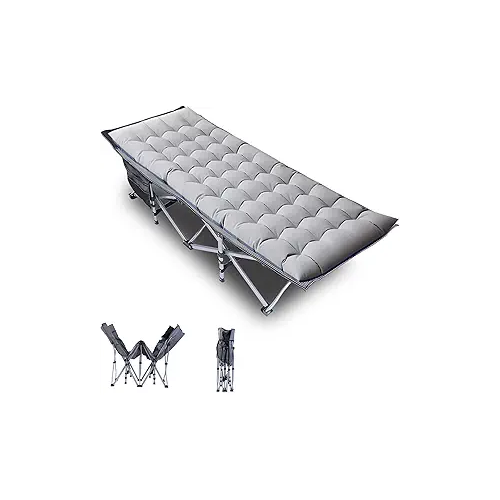 The camper cot mattress is the ultimate solution for comfortable sleeping on the go. With its included cot, mattress, and carry bag, it provides everything you need for a good night’s sleep. One of the best features of this cot is that there is no assembly required, making it easy to set up and fold away in seconds.The cot bed and mattress can be used together or separately, giving you even more flexibility and convenience. At 74.5 x 27.2 inches (L x W) and weighing only 13.6 pounds, this camper cot mattress is stable and can easily support up to 500 pounds due to its strong and durable frame made of 26 steel pipes. The camper bunk mattress is soft and skin-friendly, filled with fiber cotton that ensures a comfortable sleeping experience.