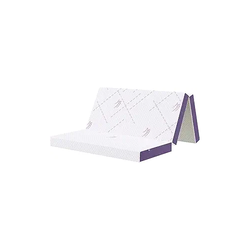 Tehsil’s four-inch queen size folding bed features a double-layer design and no fiberglass. It is made of foam that has been CERTIPUR-US certified. Gel-infused memory foam that is one inch thick contours to the body and effectively alleviates pressure. Support foam with a higher density and a length of three inches that provides better support. You will have a restful and comfortable night’s sleep because there is no irritating fiberglass.