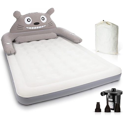 For kids who desire a fun and relaxing night’s sleep, this queen-size inflatable air mattress is ideal. Children can get extra support and comfort from the removable cartoon bear backrest whether lying down or sitting up in it. The backrest is excellent for reading books or viewing films while you relax.