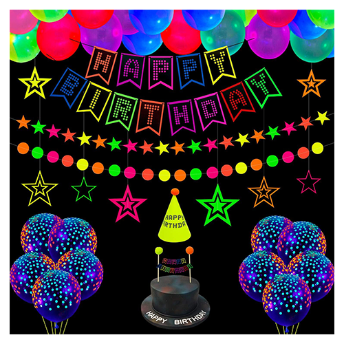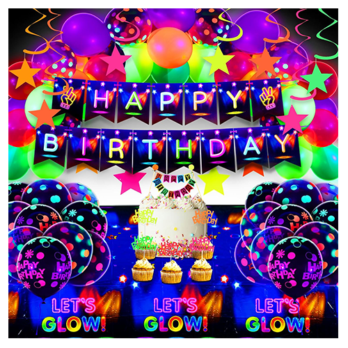 Glow In the Dark Party Decorations, Neon Balloon, Happy Birthday Banner