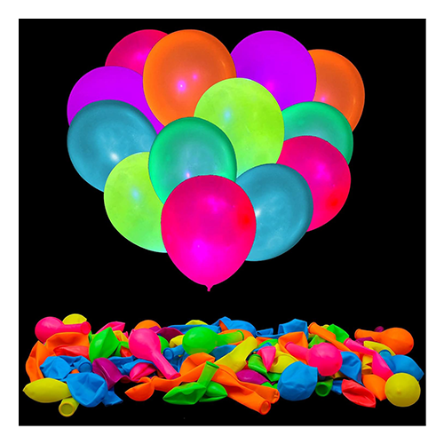 Balloons for glow in the dark party decorations, contains 300 neon balloons in various colors, turn on your UV black light, make it incredibly bright in a dark party theme, will give people an amazing visual effect . These black light balloons are made of latex, durable won’t explode easily. These neon fluorescent glow party supplies backlight balloons come in more than 5 different colors, including red, orange, purple, green, and yellow, etc., which are neon in normal light and fluorescent in specific violet light ,very beautiful.