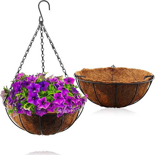 The metal hanging baskets includes two strong hanging planters and two coco liners at a great price. The inside diameter of metal hanging baskets is 12 inches, and their depth is 5 inches. Having a large capacity of metal hanging baskets means you’ll have plenty of room to arrange and showcase your lovely flowers and plants.