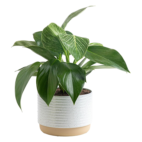Take pleasure in the striped, green foliage of Philodendron ‘Birkin,’ which is ideal for tabletops. Philodendron ‘Birkin’ should be grown in medium light. It needs about one cup of water once a week. Make sure any extra water drains. Adapt as necessary to your surroundings. Philodendron ‘Birkin’ should never be left in water or moist soil. Costa farms plants measures approximately 15 inches tall from the bottom of the pot to the top of the plant when shipped. Philodendron ‘Birkin’ arrives in a 6-inch white terra cotta container.