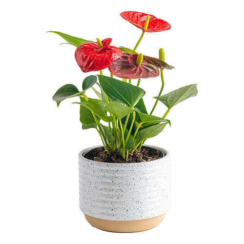 The heart-shaped flowers are a representation of love and affection. The costa farms plants Anthurium is a well-liked variety whose large, eye-catching blooms can last for weeks. The Tiny Hearts Planter that this indoor plant comes in is designed to complement its natural beauty. The planter is ideal for adding a touch of green to any space because it is small and compact. The plant itself can thrive in a variety of indoor settings and is simple to maintain. It prefers soil that is constantly moist and well-drained, as well as bright indirect light.
