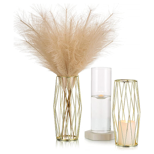 Vases that are higher can be used to add height and interest to a large table. Choose the appropriate flowers: When selecting flowers for your gold tall vases, think about the event’s color scheme. Flowers with a white or pastel color, like roses or lilies, can create a classic, elegant look. On the other hand, bright, bold blooms, like sunflowers or dahlias, can add a more contemporary touch. Add accents like greenery: To give your arrangements texture and interest, incorporate greenery or other decorative elements. For a distinctive appearance, think about including feathers, ferns, or branches in your arrangements.