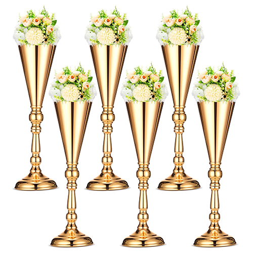 Potchen 6 Pcs Flower Trumpet Vase Tabletop Wedding Table Decorative Centerpiece Decorations Gold Tall Vases Arrangements for Floral Party Event Anniversary Birthday Decor, 16.5 Inches