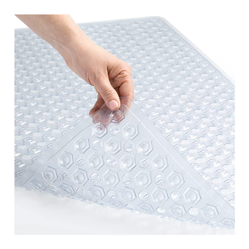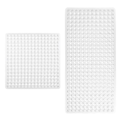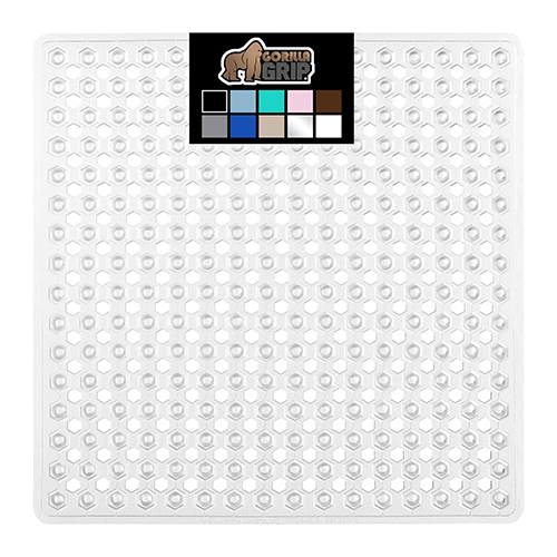 Includes a patent-pending clear 35 by 16-inch shower and bath mat and a patent-pending 21 by 21-inch shower stall gorilla grip bath mat. This mat, which has hundreds of suction cups, is simple to install and a fantastic option for any home, gym, or spa. It helps keep the mat securely in place on smooth, clean, non-textured, non-tiled surfaces. The bath mat sizes have a distinctive hexagonal design with a soft, textured topside that will keep you and your family comfortable.