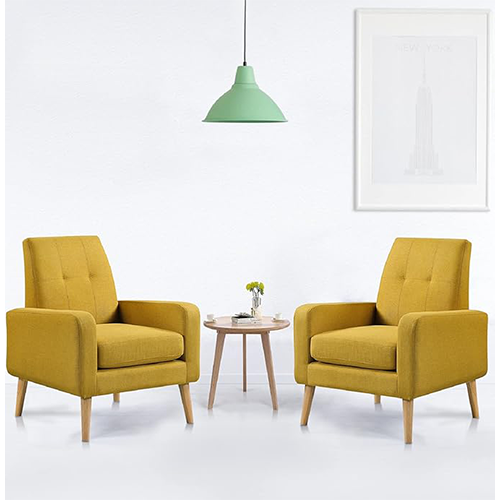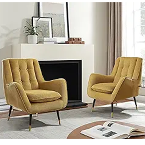 The high-quality fabric of these yellow living room chair is soft, airy, and comfy, while the high-density memory sponge filling provides the utmost feeling of warmth and comfort. This traditional button-tufted diamond back design and two-tone steel legs of these yellow living room chair will bring exceptional flair to any home décor outfit you choose to adorn your space with.