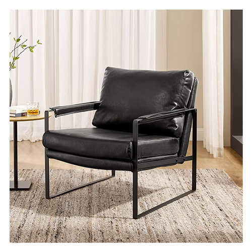 - The faux leather accent chair has sturdy metal legs with rubber feet protectors to protect the floor.