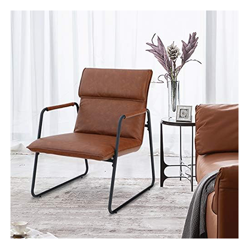 The brown cloth chair is stain resistant and simple to clean. We combined an industrial metal frame with modern PU leather to create this one-of-a-kind mid-century retro modern lounge chair that is suitable for a wide range of settings, including the living room, bedroom, study area, cafe, workplace meeting room, and so on. The brown living room chairs are padded with high density sponge foam cushion body rest for comfort and a hefty duty metal frame with a 350LBS weight tolerance to deliver the greatest seated experience. And it’s made of high-quality PU leather, so you won’t have to worry about cleaning it. Simple to clean.