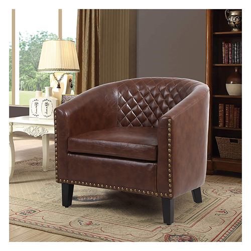 The upholstered barrel tub chair with contemporary nail head trim is quite simple to put together. Only a few minutes are required. This stylish and classic wood arm accent chair will provide a unique and appealing accent chair to your decor. High density foam mattresses with arms and a gorgeously quadrilateral pattern back hug your body in comfort, allowing you to turn any space into your favorite spot to unwind and relax in great relief. This robust wood arm accent chair allows you to relax in the knowledge of years of enjoyment to come, thanks to its premium microfiber upholstered fabric/leather and solid legs wooden structure.