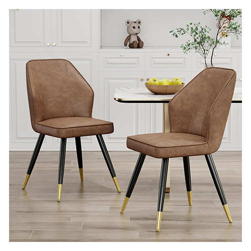 4-piece set of PU faux leather dining chairs that are stain- and water-resistant: The dining chair’s seat and dining chairs with metal legs backrest are covered in high-quality camel brown PU leather, and thanks to its waterproof feature, it is simple to clean any dirt with a damp towel. Reduce the amount of daily maintenance you do.4 Piece Set of Mid Modern Dining Chairs: In order to satisfy the preferences of a wide range of consumers, Zanzio is dedicated to creating the newest furniture. We like the option of brown PU leather dining chairs. The chic minimalist shell design is the ideal accent to your kitchen and living area, bringing modern style to your house or apartment.
