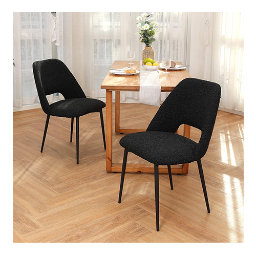 JIRAIN Mid Century Modern Dining Chair Set of 2, Boucle Fabric Upholstered Dining Chairs with Metal Legs, Round Back Side Chairs for Kitchen Living Room(Armless, Black)