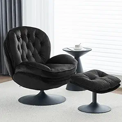 Velvet Swivel Accent Chair with Ottoman Upholstered Reading Chair with Footrest Set Comfy Arm Chair for Small Spaces Apartment Office Living Room Bedroom Black