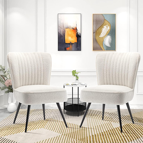 The accent armless chair’s stunning colour and contemporary mid-century design make it the ideal fit for any decor. The stunning accent white living room chairs has plenty of seating space and is the perfect size for a small space. Most house décor is ideal for modern style. For your living area, bedroom, dining room, study room, dorm room, lobby, and often used in reception and cosmetics vanity. Simple yet attractive design. The Sherpa white accent chairs set of 2 for leisure is simple to put together.