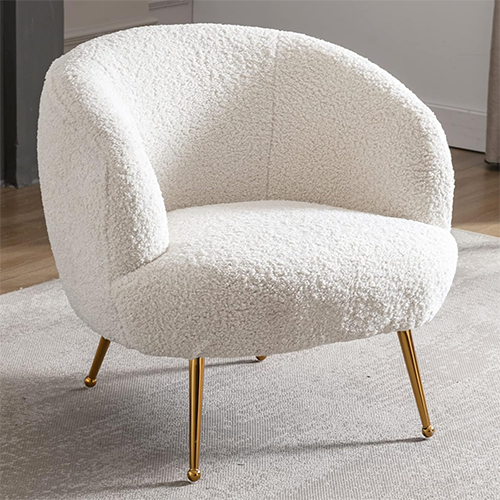 ERGONOMIC DESIGN: A well-padded, ergonomic barrel-shaped seat of white barrel chair with armrests offers a seat that is incredibly cozy, soothing, and delightful. Medium-high padded back to support and align your spine. STURDY & COMFY: The seat is anchored thanks to solid support from the four sturdy golden metal legs, and the sherpa fabric is soft and pleasant with no skin stimulation. DIMENSIONS: Overall Dimension: 29.53″(D) x 27.95″(W) x 28.74″(H); Weight Capacity: 250 lbs. Seat Width: 18.5″; Seat Depth: 20.47″; Seat Height: 17.72″; Back Height: 15.75″