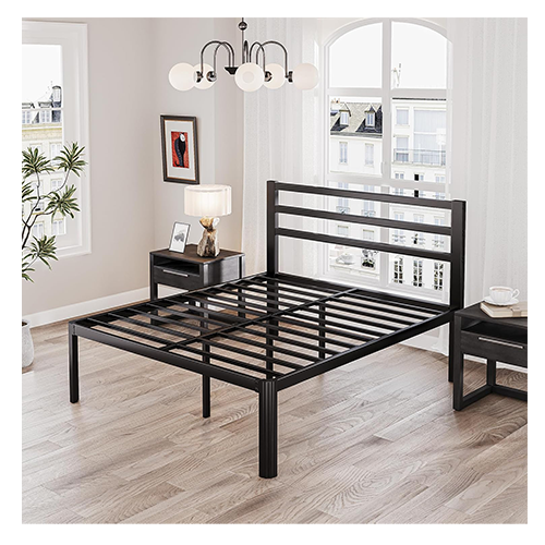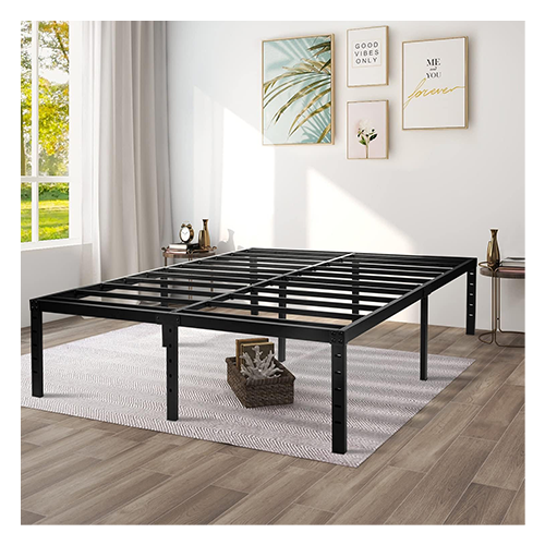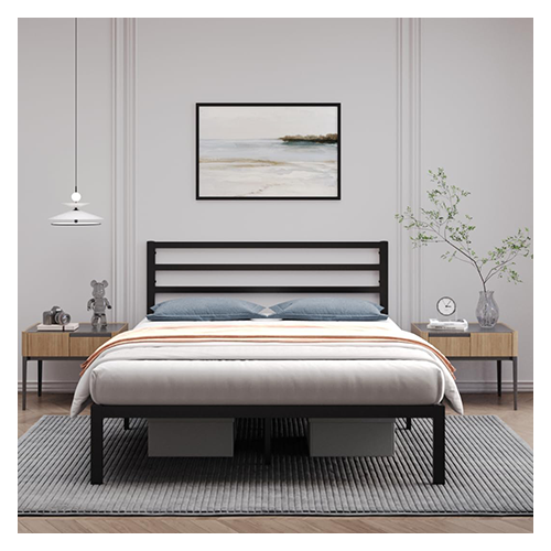 The headboard consists of thick, black bars placed at an angle. LIQUID STORAGE: Short on room to put stuff? With a generous 12 inches of vertical room under the bed, this platform bed frame is ideal for accommodating under-bed storage. A lofted heavy duty metal bed frame king not only offers a room a more polished appearance, but it also provides useful storage space for large goods. SIMPLE ASSEMBLY: Put it together yourself! You can put together this heavy duty metal bed frame king in the comfort of your own home because it comes with everything you need. The black metal bed frame that we have is balanced and strong. Get some rest tonight on a sturdy metal bed frame buy today.