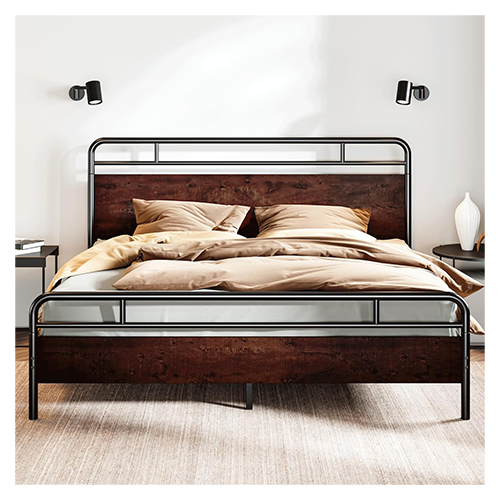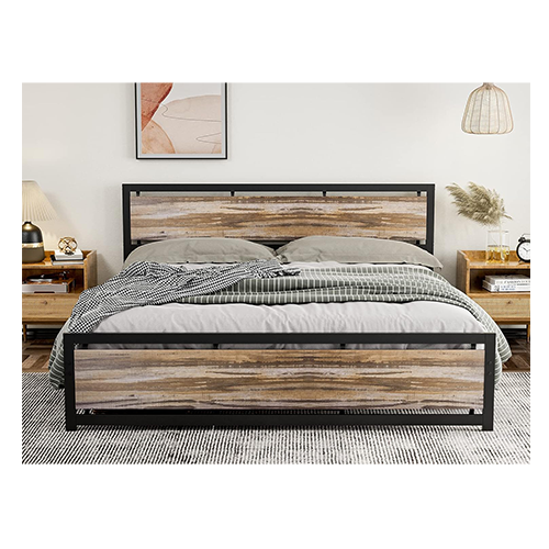 King Size Metal Headboard, Style with Wooden Headboard and Footboard, Steel Slats, Heavy Duty Metal Bed Frame King
