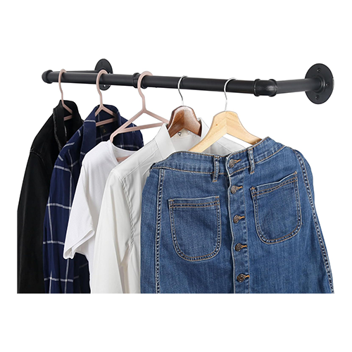 The pipe cloth wall mounted clothing rod will give your closet storage nook, laundry room, or bedroom a vintage style because it is made from black powder coated finished iron pipe and pipe flange. This tube clothes wall mounted clothing rod may be mounted wherever you need it, giving you a convenient extra area for organizing and displaying your clothing. This wall mounted clothing rod is made of solid iron pipe and can hold up a lot of your garments and outerwear with ease.