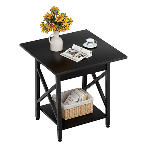 Dependable “X-Shaped” structure: Two black side tables for living room with X-shaped pre-assembled legs for the living room are built of sturdy particle board panels and 30*30mm metal galvanized tubing, each supporting 100 pounds. Four adjustable feet are included at the bottom, making the set stronger and more durable. Open 2-Tier Shelving: Two-tiered shelves on the square end table are for storing or displaying items, and the bottom level provides additional storage space.
