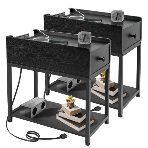 Ideal Gifts: Give the person you want to care about most these pair of black end tables for living room! In the living room or bedroom, it conveys your tenderness and affection. Spend your free time in the living room with the person you care about the most, and watch over them during the long evenings. These black end table with drawer with charging ports make thoughtful presents for your partner, parents, and friends.