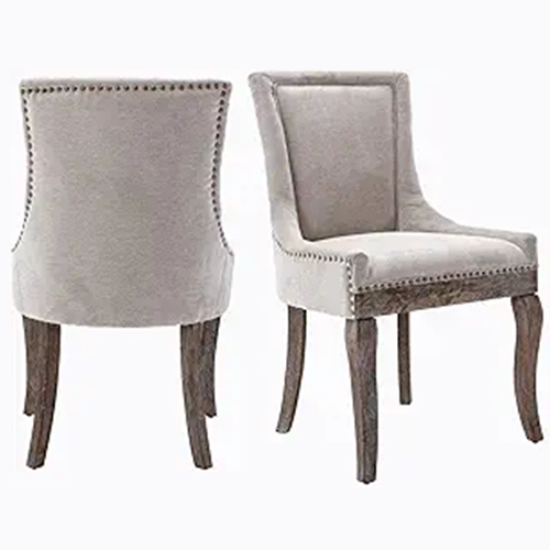 These kitchen nailhead dining chairs have nailhead trim. This gives the chair a highly current, modern look. Four sturdy, curving legs made of solid wood in a neutral colour support this accent kitchen chair. They immediately stand out from other dining chairs due to their fashionable appearance. To access the chair legs, you must unzip the pouch that is located under the seat. Solid wood nailhead dining chairs with a sponge-padded seat that is rustic, strong, and soft-packed.