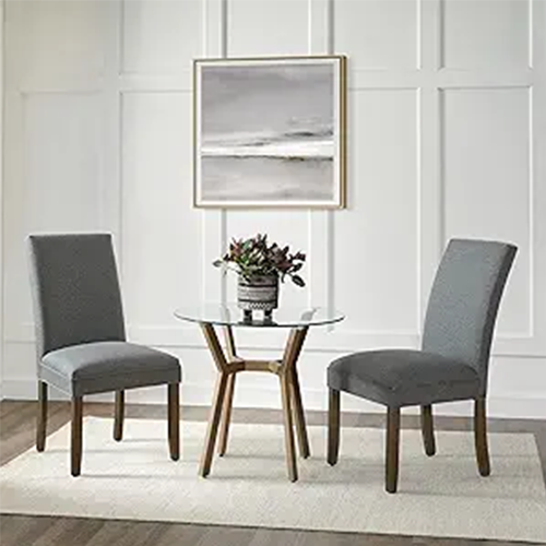 With this pair of gray upholstered dining chairs, you can add flair and sophistication to your dining area. These timeless chairs’ transitional design and neutral hues make them the ideal foundation for any decor or complement to your current furnishings. The fabric for dining room chairs has a classic appearance thanks to the high backs and cloth upholstery. Long-lasting comfort is provided by the contoured support of the foam-padded seat and gently curved back. Improve your dining area with gray upholstered dining chairs to create the ideal dining atmosphere! Specifications of the product are, Maximum weight: 300 lbs. height of the seat is 26.88, depth is 19.85, and width is 37.11.