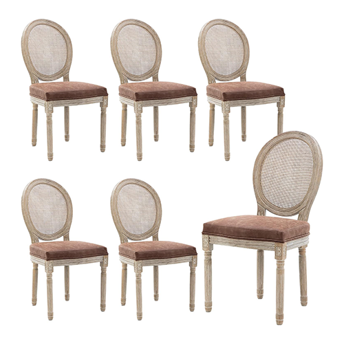 Upholstered Dining Chairs Set Of 6 With Round Rattan-Farm House Dining Set