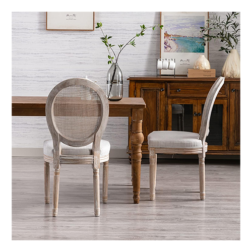 Beautiful distressed carved designs on the wood frame; natural, breathable rattan back. The upholstered dining chairs set of 6 have an exquisite round backrest made of woven rattan, and they are made with top-notch craftsmanship. The farm house dining set is perform well in any style theme and may be used in your dining area, kitchen, living room, bedroom, or office for eating, conversing, working, or reading a book. The quality foam padded seat is upholstered in a sturdy linen fabric. Extra-large: 37.75 “H x 22″D x 19.5″W. Chair Height: 19.5 “.