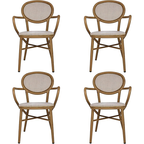 Rattan Dining Chairs Set of 4 Indoor Outdoor Use with Backrest Arm Restaurant Chair Dining Bistro Cafe Aluminum Chairs Beige