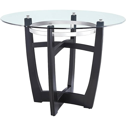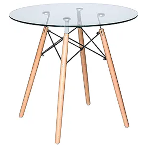 This glass dining table with wood base, which looks great with both contemporary and classic furniture, is the perfect choice for giving your dining area an air of ease so you can entertain guests in comfort. The round tabletop is made of tempered glass, and it is securely connected to the base of the table. This helps the table maintain its solidity. The base of glass dining table with wood base is crafted from beech wood of the highest quality. Lightweight. A support for the Eiffel tower made out of chrome-plated black steel. Dowel legs of glass dining table with wood base that have been finished with wood that is friendly to the environment. Included in this package are floor protectors to prevent any scratching that might occur to your flooring. There is going to have to be some putting together done.