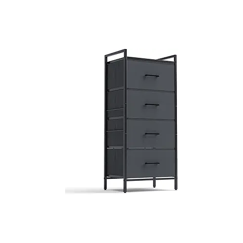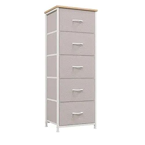 5 Drawer Chest for Closet With 5 detachable drawers, each of which can hold nearly 15 items of clothing, this space saving dresser for storage can be used inside or outside of the closet. It helps to reduce clutter by allowing you to organize your clothes, accessories, baby clothes, lingerie, socks, blankets and knitting supplies in one simple location. Entitled “Master of Space Management “While only taking up a small amount of room, this narrow fabric tower offers lots of storage space to keep the room neat and organized. Wood top with a hard surface for displaying lamps, mugs, alarm clocks, charging stations, and other items; large drawer for storing books, toys, cosmetics, gadgets, toiletries, etc.