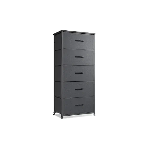 The Somdot five-drawer dresser and space saving dresser has various uses and may be placed anywhere in your house. It may be used as an entryway storage stand, a nightstand in the bedroom, an end table in the living room, a toy chest in the nursery or even put inside the space saving dresser closet to add more space for storage. High Quality the sturdy structure of this item, which ensures resilience against wear and tear over time, includes a strong steel frame, durable wood board, adjustable plastic feet, and premium fabric drawers.