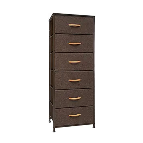 Crestlive Products Vertical Dresser Storage Tower - Sturdy Steel Frame, Wood Top, Easy Pull Fabric Bins, Wood Handles - Organizer Unit for Bedroom, Hallway, Entryway, Closets - 6 Drawers (Brown)