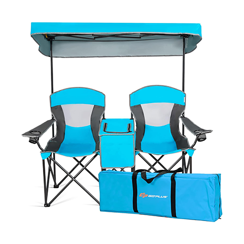 Goplus Double Beach Chair with Canopy and Carrying Bag - Folding Chair with Canopy for Outdoor