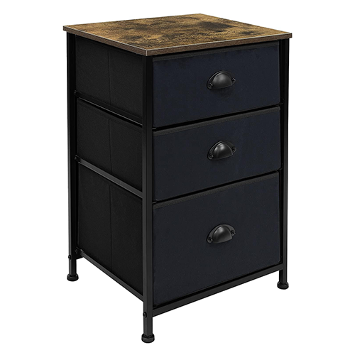Sorbus Nightstand with 3 Drawers - Bedside Furniture & Accent End Table Chest for Home, Bedroom Accessories, Office, College Dorm, Steel Frame, Wood Top, Easy Pull Fabric Bins (Black/Wood)