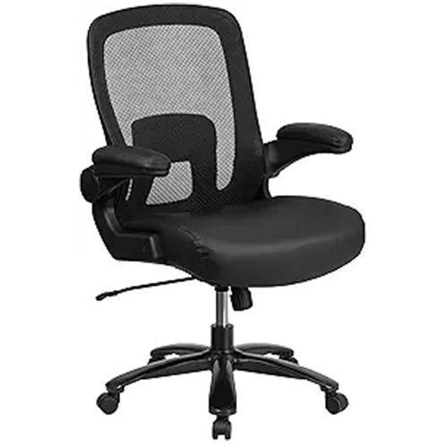 500 Lb. Office Chair Flash Furniture HERCULES. Rated Black Mesh/Leather soft With Adjustable Lumbar