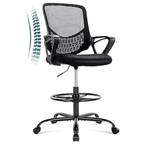 SMUG Drafting Chair Tall Office Chair, Standing Desk Chair Counter Height Office Chairs, Mid Back Mesh Office Drafting Chairs with Armrest, Height Adjustable Foot Ring, Black