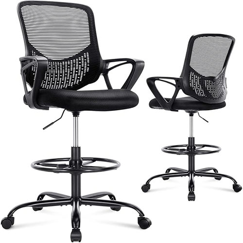 Counter Height Desk Chair, Mid Back Mesh Office Drafting Chairs with Armrest, Height Adjustable Foot Ring, Black