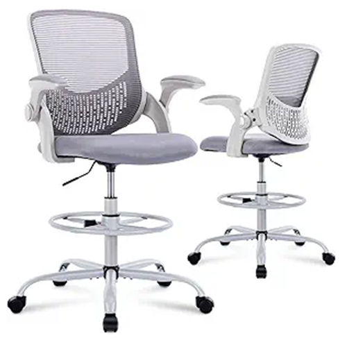 Excellent Adjustability The pneumatic adjustment lever on this flip up armrest office chair that rotates 360 degrees allowed for the height to be readily modified from 23 inches all the way up to 30 inches. Additionally, the soft armrests that fold up allow you to relax your shoulders and allow your arms to rest in a calm position. When you are working in an elevated posture and your feet are unable to reach the floor, there is a foot ring that can be adjusted that will make the seat more comfortable for you.
