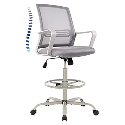 Ergonomic Backrest Because a counter height desk chair is modeled after the back of the human body, the back of this counter height desk chair can provide you with pleasant support and relieve the pressure placed on your back. A Seat Cushion That Is Comfortable The skin-friendly mesh design on the high-density seat cushion will make it more comfortable, and the cushion will last longer.