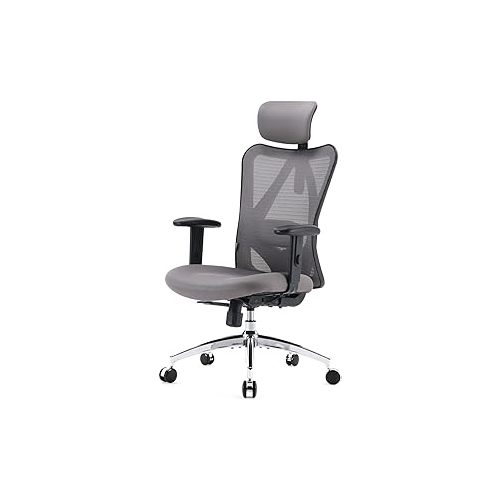 SIHOO Ergonomic Office Chair, High Back Desk Chair, Adjustable Headrest with 2D Armrest, Lumbar Support and PU Wheels, Swivel Computer Task Chair for Office, Tilt Function Office Chair, Grey