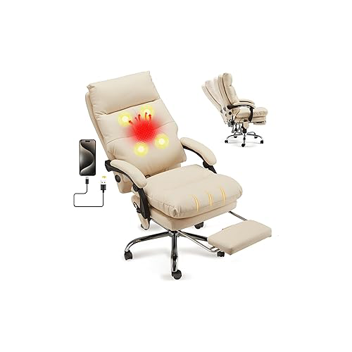 HOMREST Ergonomic Executive Office Chair, Massage Office Chair with Heated PU Leather Adjustable Height Reclining Office Chair with Foot Rest Armrest, Lumbar Back Support Home Office Desk Chairs