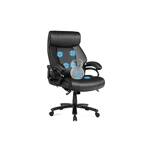 POWERSTONE Big and Tall Office Chair 500lbs, Ergonomic Office Chairs with Six Massage Points PU Leather Computer Chair Home Office Desk Chairs Adjustable Large Executive Chair with Armrest Swivel