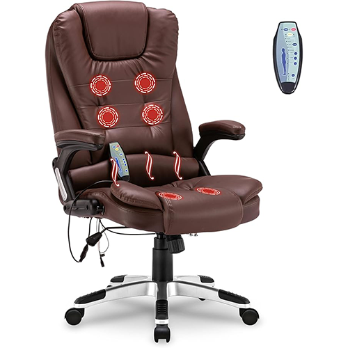 Paddie Heated Massage Office Chair in Brown with Adjustable, Flexible Remote and Caster Included