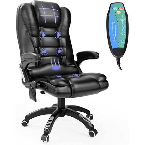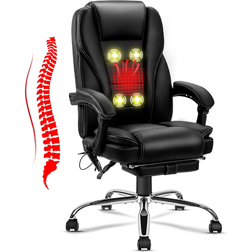 HOMREST Heated Massage Office Chair in Adjustable, Durable, and Flexible - Office Chair With Heat and Massage Black Leather Finish for Massage and Office Use