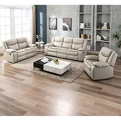 Cream Leather Sectional, Manual Reclining Sofa Sets with 1-Seat.