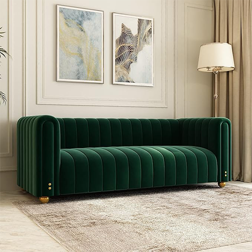 Emerald couches make it perfect for 3 to 4 people to sit on it and unwind comfortably. Comfortable and Cozy Velvet Fabric: Made of 100% velvet, this material is the greatest choice available due to its feather-like softness, distinctive sheen, and high tensile strength, Emerald couches prevents tears and wear on the fabric. It also has a built-in resistance to wrinkles and exceptional longevity. Comfortable Upholstered: A contemporary tufted velvet sofa with plush seat cushions adds style and dependability to any space.